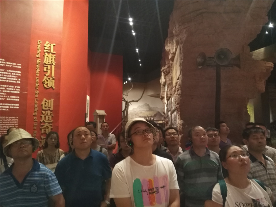 本次学习活动内容为两个方面:一是参观红旗渠纪念馆,以及实地参观红旗渠;二是参观中国文字博物馆。在参观红旗渠纪念馆的学习活动中,通过讲解员生动的解说,以及一张张黑白照片的展示,让人深刻感受了那段震撼人心的历史,感悟了红旗渠精神的深刻内涵和时代价值。之后,通过实地参观红旗渠,更是让全体参加学习的党员们真实的被“自力更生、艰苦创业、团结协作、无私奉献”的红旗渠精神深深触动。一渠绕群山,精神动天下。红旗渠不仅是现代工程史上的奇迹,是一部与大自然搏斗的壮丽史诗,修渠中孕育形成的红旗渠精神,更是全党和全国人民宝贵的红色精神财富。在红旗渠的青年洞前,全体参加学习的党员们庄严的举起右手,重温入党誓言,深刻的感受精神、牢记誓言。