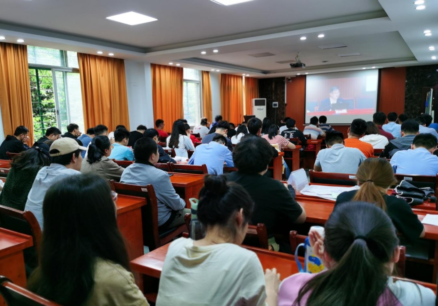 参加宣讲会的师生认真聆听唐亚阳书记对第三次党代会精神的宣讲,并对学校“353”战略以及十四五和二〇三五年的奋斗目标报以期待。