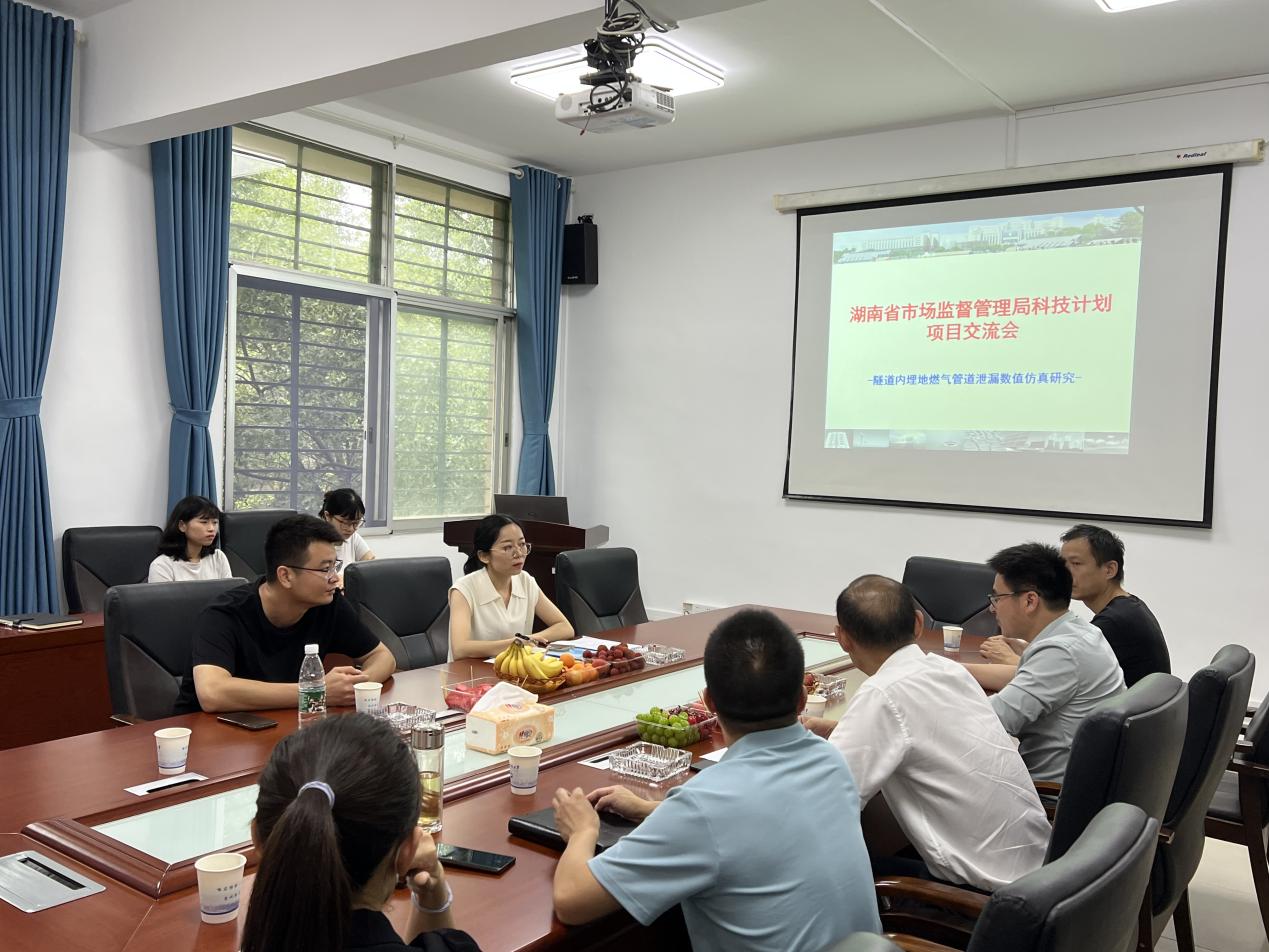 南方煤矿重点实验室积极响应“学思想、强党性、重实践、建新功”的号召,积极开展支部实践活动,引导支部党员学思想、见行动。结合自身科研情况,实验室于2023年6月20日邀请省特种设备研究院科技与财务部(科技发展)副部长向丽、省特种设备研究院科技与财务部(科技发展)副部长张弛、湖南省特种设备研究院项目负责人龚思璠,就“市场监督管理局科技计划项目‘隧道内埋地燃气管道泄漏数值仿真研究’”项目展开了合作交流。实验室主任朱永建、副主任王鹏飞、作业环境安全与职业防护研究所所长黄飞,以及支部全体党员参会。