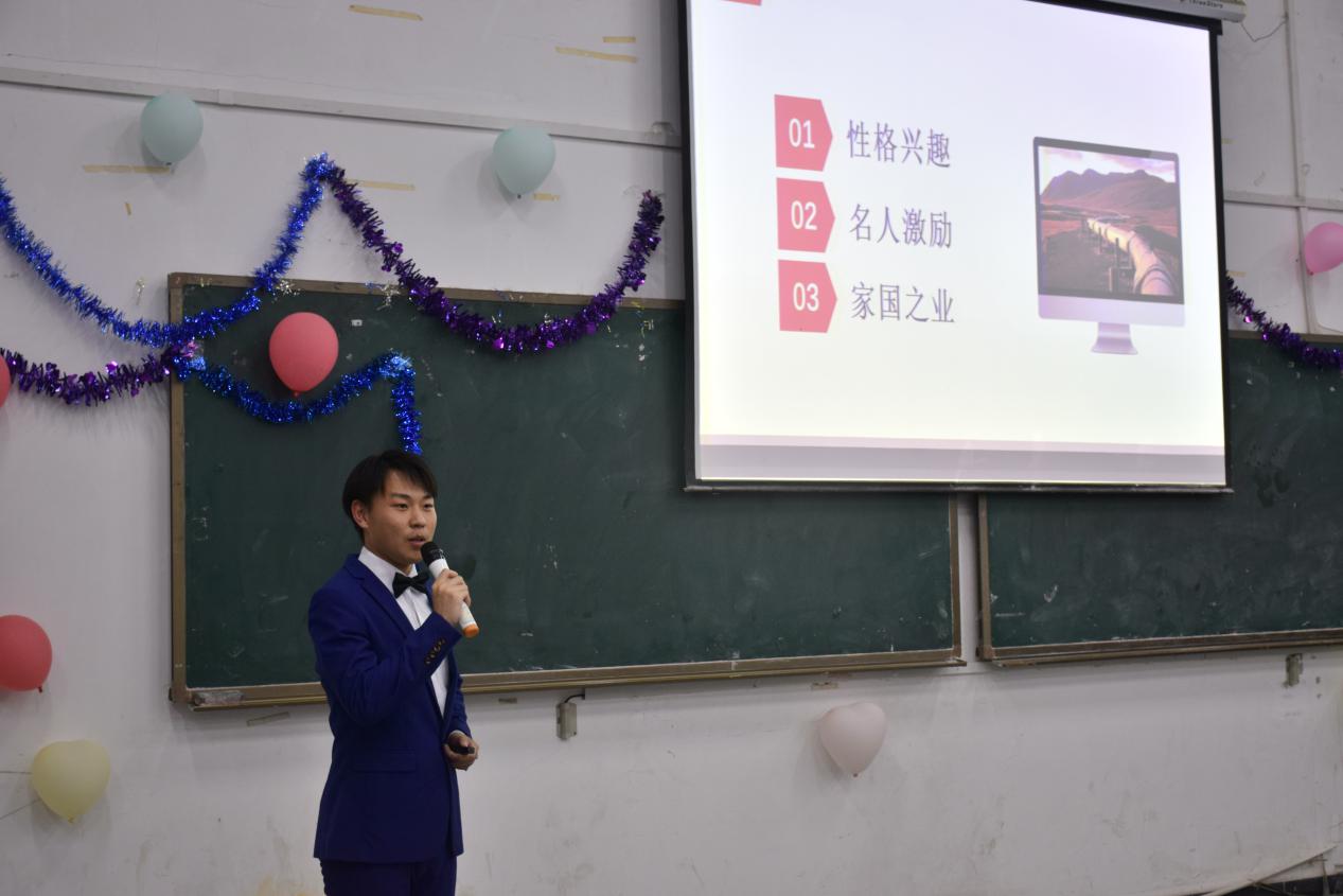 来自地科四班的傅颖同学,用加里宁的话“教师的世界观,他的品行、生活,他对每一现象的态度都这样或那样的影响着学生,”来激励自己成为一名优秀的地理教师。之后的道路,她将“长路漫漫,且随疾风前行。”勘查一班王梓博同学将“大庆精神”作为自己的指导思想,立志成为一名石油工程师,在之后的学习生涯中他将不断突破自我,将最清晰的脚印踩在最泥泞的前进道路上。身穿军装的地信二班章俊昊同学通过介绍自己在入伍期间的抗洪救灾等英勇事迹以及对所处环境的分析,最终确定了自己的职业目标,成为一名“为人民服务”的人民警察,他将始终以铁一般的信仰、信念、纪律和担当继续为祖国奉献自己。