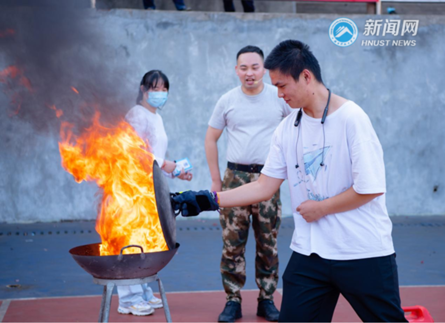 ▲学生实践如何灭火