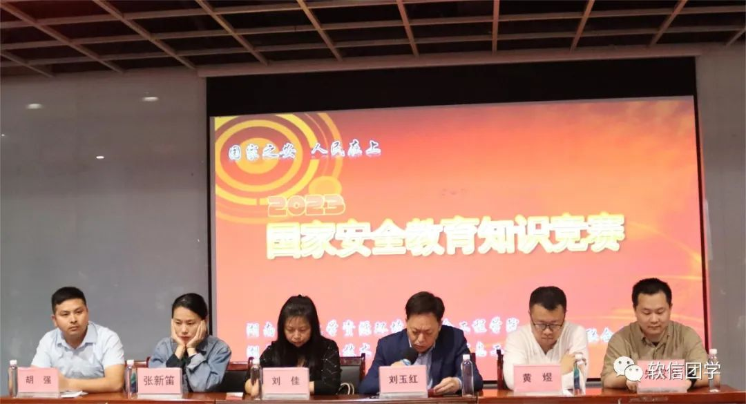 湖南软件职业技术大学校党委委员刘玉红、成人漫画 团委书记张新笛出席活动。刘玉红老师以“贯彻总体国家安全观,增强广大人民的国家安全意识和素养,夯实以新安全格局保障新发展格局的社会基础”为主题发表致辞。他指出,2023年是贯彻落实二十大精神的开局之年,国家安全是以人民安全为宗旨,学校举办安全教育知识竞赛是实现学生国家安全教育“教”与“学”的双向贯通,同时能引导学生理性思辨,坚决抵制危害国家安全、社会安全的不良行为,争当保护国家安全的卫士,为铸造国家安全的铜墙铁壁贡献力量。