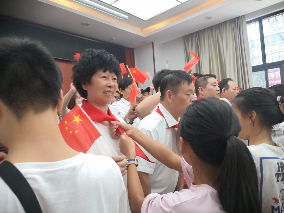 他们在台上展示自己的图画,向大家介绍图中的意义,当红色的水彩笔在手中挥动,小朋友们对党和祖国的敬仰与热爱,虽然无法用语言表达,却绘成了一颗颗闪耀的五角星,一幅幅美好的蓝图,其中一个小朋友说道,“我希望社区的环境变得更好,也希望我们的国家能更加强大。”活动接近尾声,由少先队员为老党员戴上红领巾,大家合影留念,红领巾与党徽在正午的太阳下,那红色的光芒显得格外耀眼。