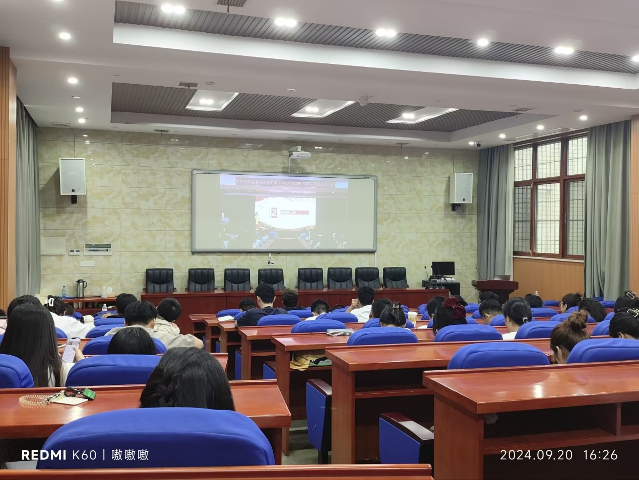 参会学生党员认真观看了湘潭市委组织部干部规划办负责人关于选调生工作的解读,并聆听了三位校友选调生代表的工作感悟和扎根基层的成长历程。