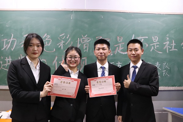 来自20级勘查技术与工程专业、20级安全工程专业的同学分别组成正反两方代表队,就“人的功利色彩增强是不是社会进步的体现”这一主题展开激烈辩论。勘查技术与工程专业代表队辩手为:一辩王梓博、二辩刘汉琳、三辩田丽园、四辩于洋;安全工程专业代表队辩手为:一辩杨芯宇、二辩郭旭、三辩胡皓磊、四辩吴雅俊。