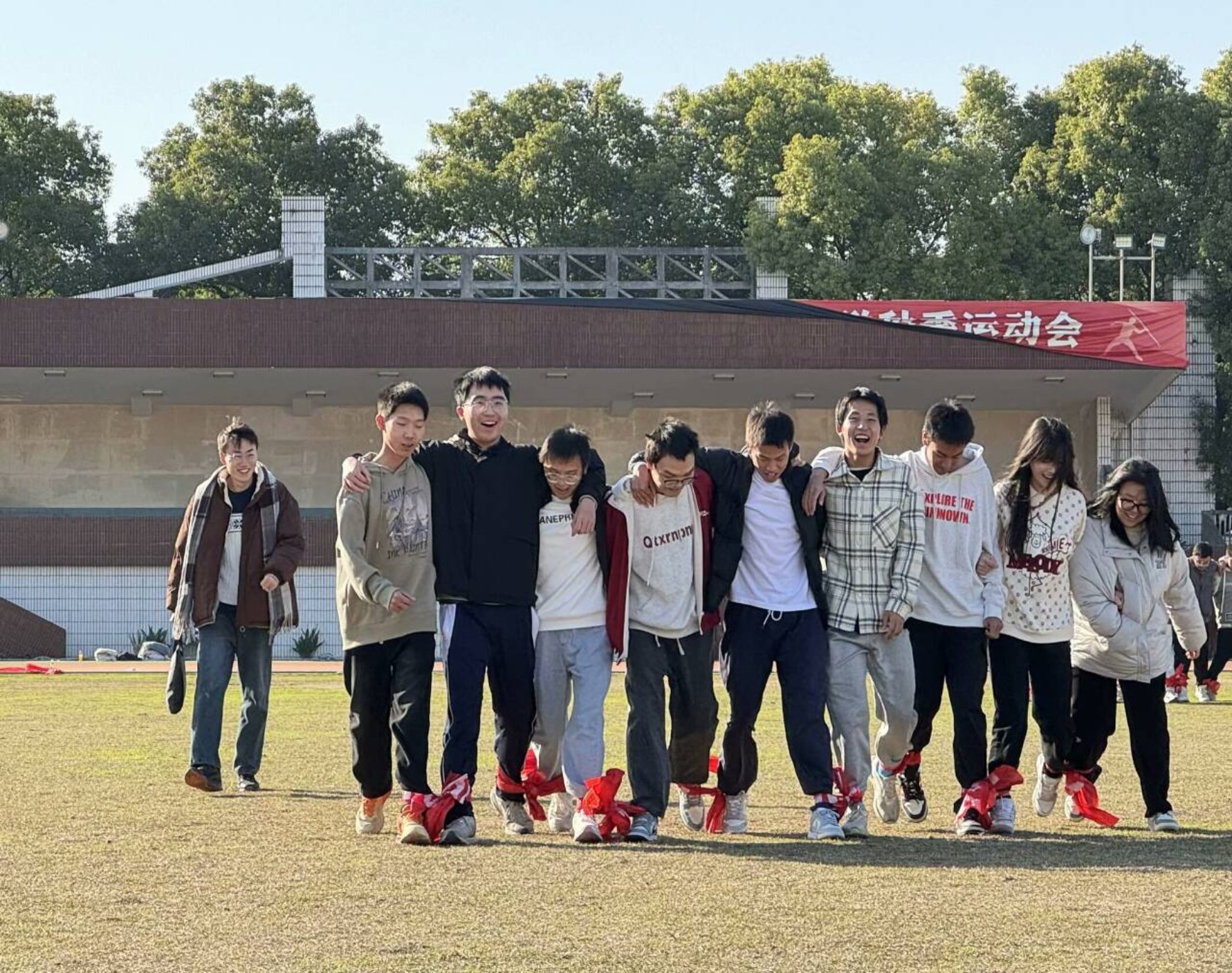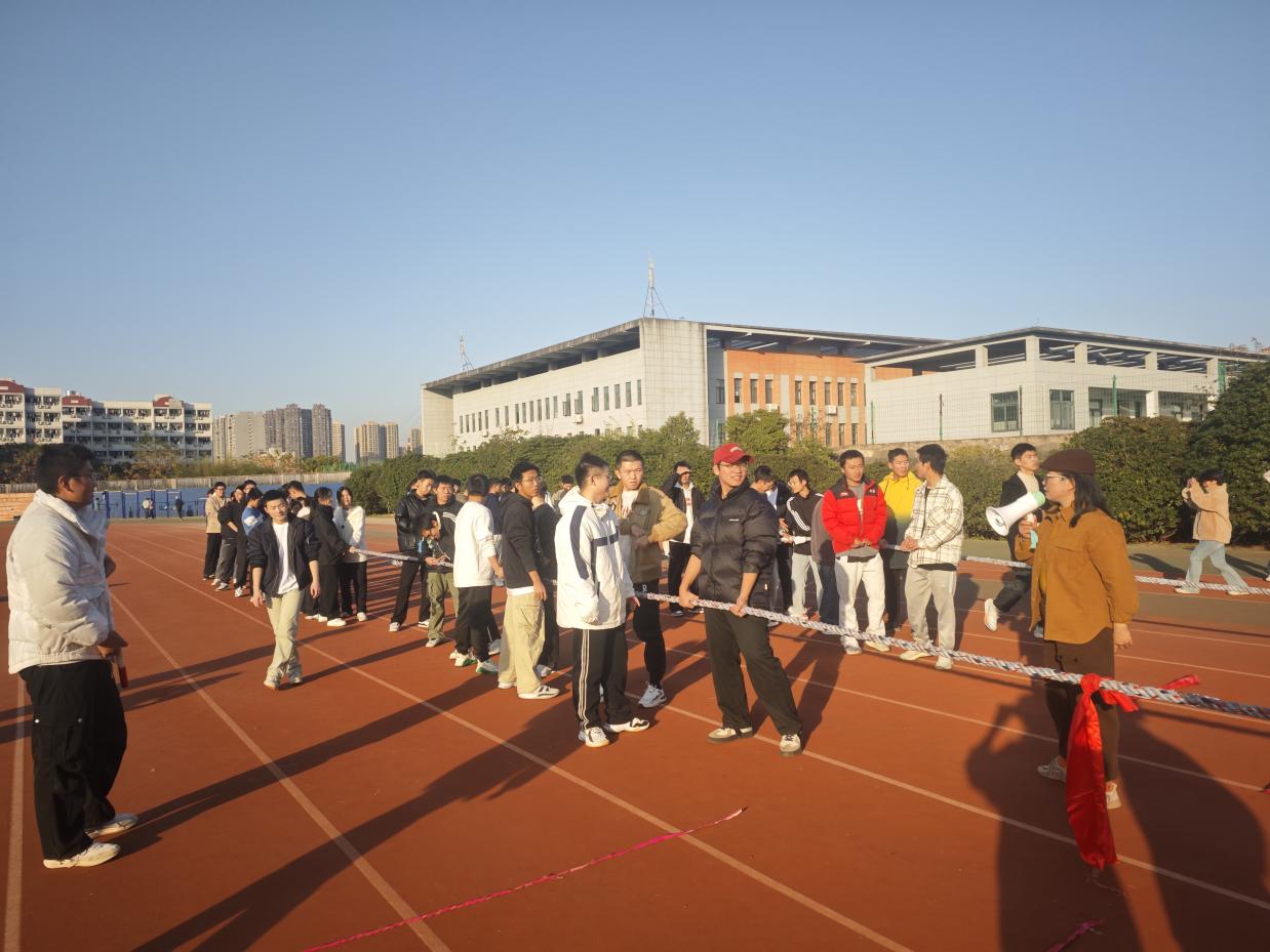 比赛项目有:班级同心协力“十人十一足”、寝室同心协力“六人七足”、班级"团结杯"70m接力赛以及班级拔河比赛。同心协力比赛中,随着发令枪响,各队伍如离弦之箭般冲出。队员们双手紧紧搭肩,口中喊着低沉有力的口号:“一二、一二……”,每一步都扎实稳健。班级"团结杯"70m接力赛中,每一棒都拼尽全力,在赛道上飞速传递。班级拔河比赛更是高潮迭起,粗绳两侧,同学们咬紧牙关、拼尽全力,脸庞涨红,那是为集体荣誉而战的赤诚。一旁加油助威的呐喊声如汹涌浪潮。