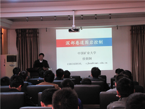 侯教授给大家阐述了深部巷道围岩控制所面临的形势,指出了当前深部巷道支护必须解决的主要难题。同时提出了深部巷道围岩控制的基本途径和技术。讲座结束后,侯教授与与会人员就一些重点问题进行了深入交流。
