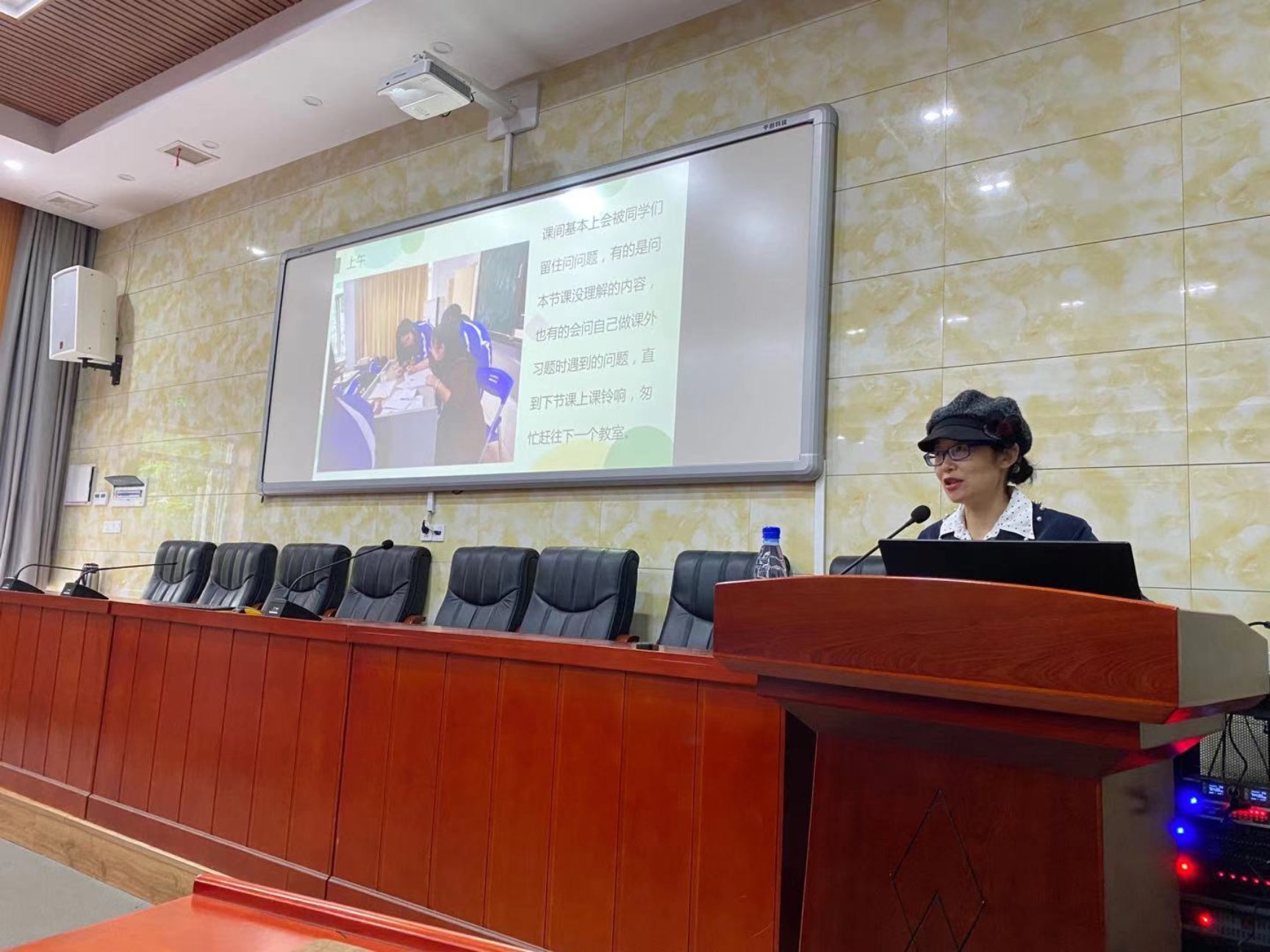 接着,邓春梅老师指出,我们热爱生命,热爱工作,也要热爱学生,但是不要忘了热爱自己。只有教师发展了,学生才能获得真正意上的发展,只有教师教得快乐和幸福,学生才有可能学得快乐和幸福。我们要时时刻刻从教育工作中感受到快乐。