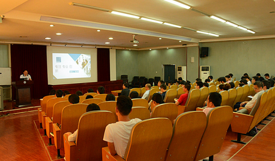 吴汉阳总经理为学员作了题为《专注 专业 创新》的讲座,与学员们分享了自己艰辛又精彩的创业经历与丰富又新颖的科研成果。他首先为学员们介绍了自己,从硕士学位毕业后在广东佛山工作到下海经商,几经浮沉,经历千辛万苦带领企业一步步发展壮大,使博鑫精陶股份有限公司成为国内首个拥有纳米板式陶瓷膜生产技术与工艺的公司,其生产的蜂窝蓄热体产品占国内80%的市场份额;吴汉阳总经理为学员们介绍了公司的核心产品—纳米板式陶瓷膜的构造与过滤原理,进而介绍了让他最引以为傲的纳米板式陶瓷膜一体化处理设备(PC-MBR)。