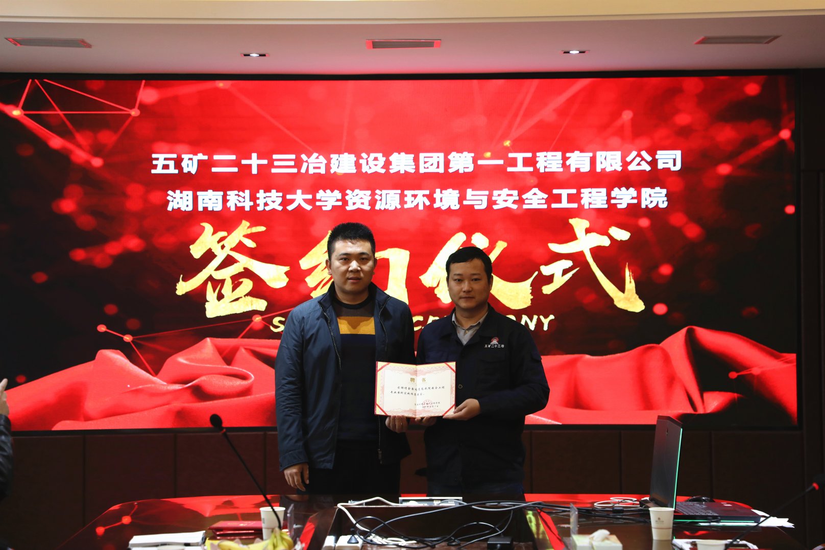 会议首先由刘向峰总工程师致欢迎辞并介绍一公司的发展历程,观看了公司安全发展专篇宣传视频。随后,王海桥院长介绍成人漫画专业、师资、教学与科研建设情况,并宣读《实习基地建设协议书》。在交换意见后双方达成一致,工会主席罗海勇与王海桥院长签订了《实习基地建设协议书》,进行“教学实习基地”授牌仪式,并颁发“本科实践指导专家”聘书。