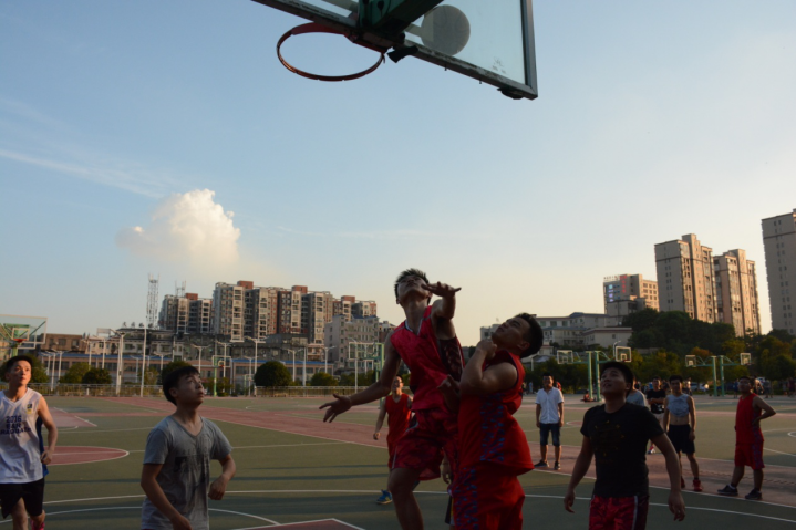 16级、17级研究生组成的蓝队进行红蓝两队的篮球对抗。