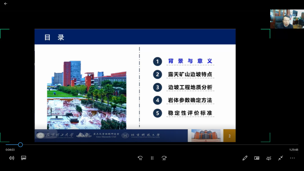应成人漫画 邀请,2021年12月30日上午9时30分,教育部“长江学者奖励计划”特聘教授、昆明理工大学国土资源工程成人漫画 院长吴顺川教授在成人漫画 学术报告厅作了题为《露天矿山边坡设计的几个关键问题探讨》的学术报告。本次报告采用线上报告的形式,院长余伟健教授主持报告。