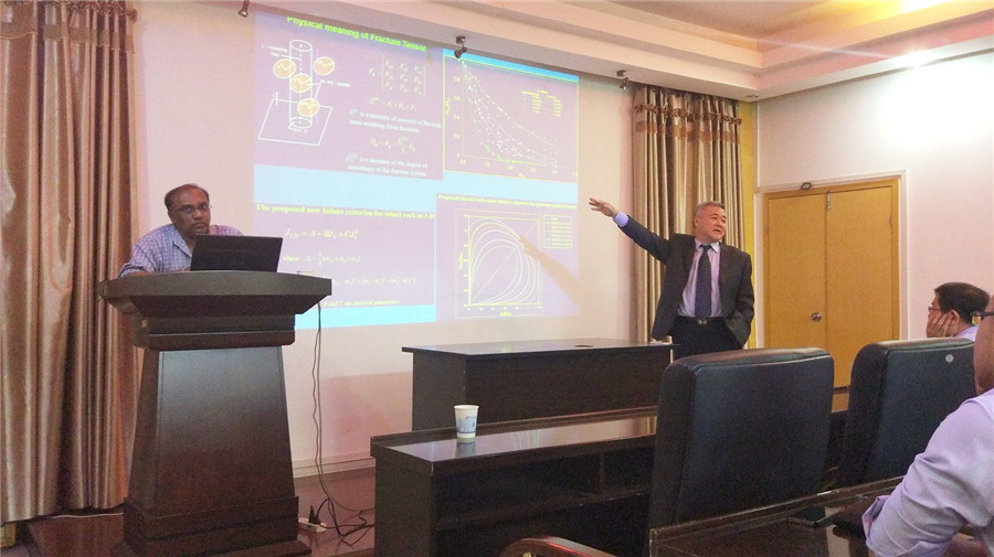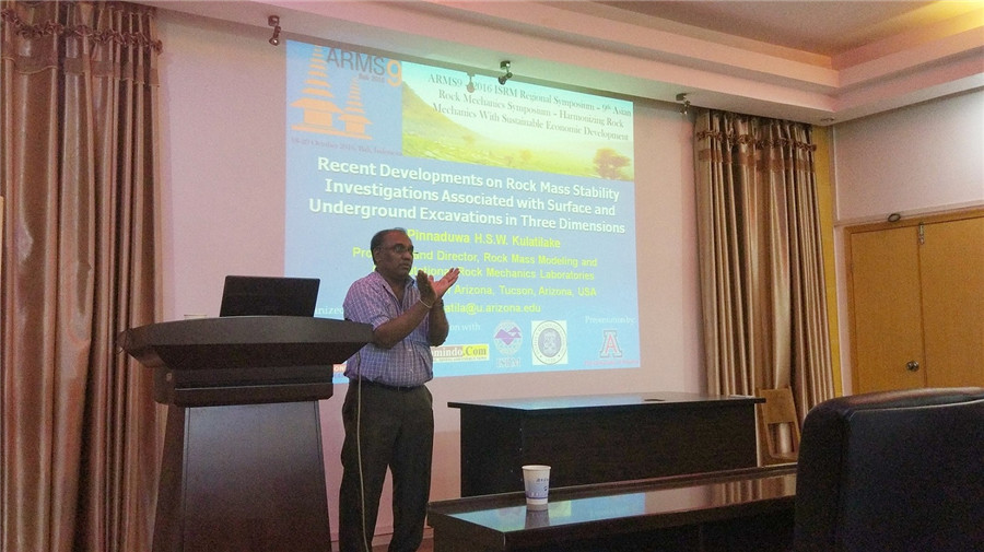相关专业教师、矿业工程及安全工程专业研究生和部分本科生聆听了本次学术报告。 Kulatilake教授所在亚利桑那大学的世界大学排名为第67位(2016年US News排名),其采矿与地质工程系有近120年矿山科研与教学的历史。Kulatilake教授学术报告结合其在矿山领域的多年研究成果,就矿山复杂节理岩体数值建模、试验强度与变形特征、巷道稳定及锚杆作用机理等多个方面进行了详细阐述和分析。 学术报告结束后,Kulatilake教授参观了成人漫画相关矿山岩石力学试验室。成人漫画党委书记万文教授、院长王海桥教授与Kulatilake教授在科学研究方面进行了洽谈,对Kulatilake教授的学术报告给予高度评价,认为此次学术报告不仅拓展了成人漫画师生的学术视野,也是促进成人漫画国际交流与合作、培养师生全球化意识的契机。 人物简介: Pinnaduwa H.S.W.Kulatilake:美国亚利桑那大学岩体模拟和计算岩石力学实验室主任/教授/博士,美国注册工程师,美国土木工程师协会资深会员。拥有近40年的矿山岩石力学和岩体工程相关研究经验,主要从事岩体力学、岩土工程以及概率和数值方法在岩土工程中的应用等研究,发表学术论文240余篇,其中SCI收录90余篇;获得2016年Peter Cundall奖及2011年中国科成人漫画