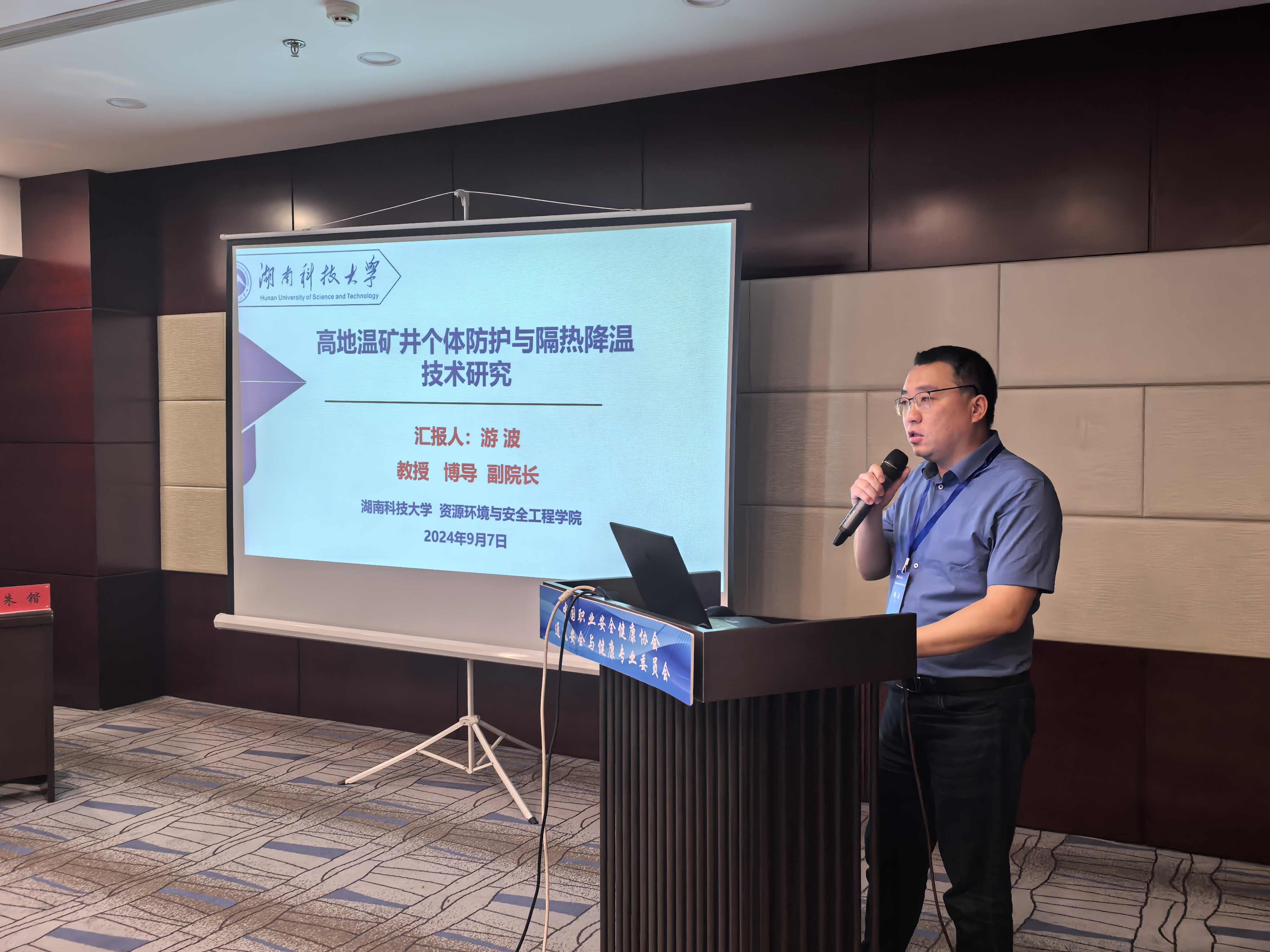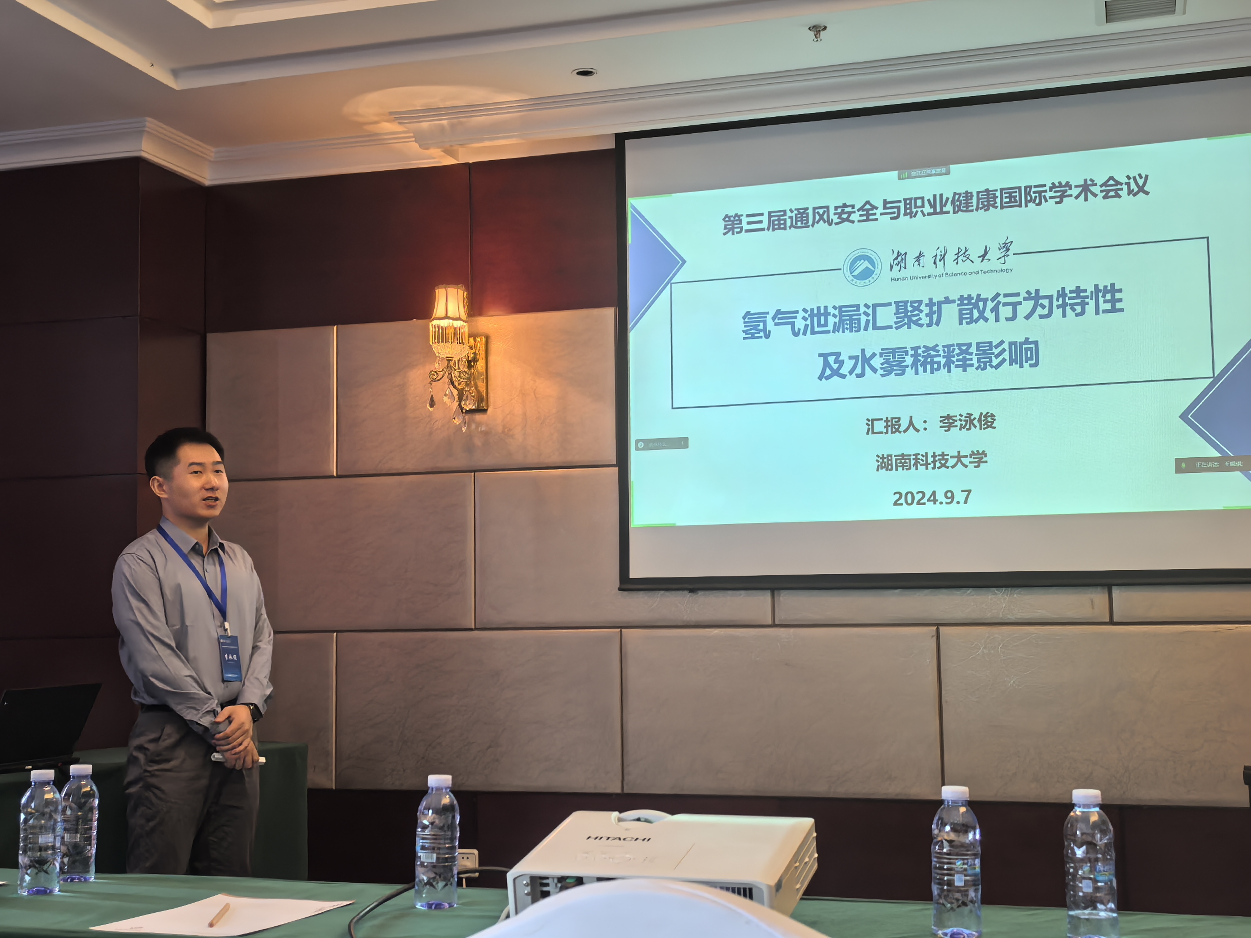 校团委书记鲁义、成人漫画 副院长游波以及南方煤矿重点实验室教师李泳俊应邀在本次会议上做报告。会议期间,鲁义书记受邀在线上作了题为《磷石膏自产气膨胀浆体防灭火新技术》的特邀报告,游波教授与李泳俊老师在会议现场分别受邀作了题为《高地温矿井个体防护与围岩隔热降温技术研究》和《氢气泄漏汇聚扩散行为特性及水雾稀释影响》的特邀报告,游波教授主持了第二分会场论坛,他们的报告均受到了与会者的高度关注和好评。